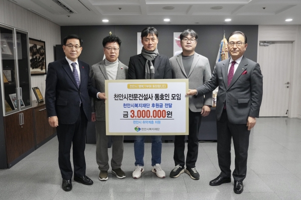 [충청뉴스큐] 천안시전문건설사 동호인 모임은 지난 17일 취약계층을 위한 후원금 300만원을 천안시복지재단에 전달했다.
