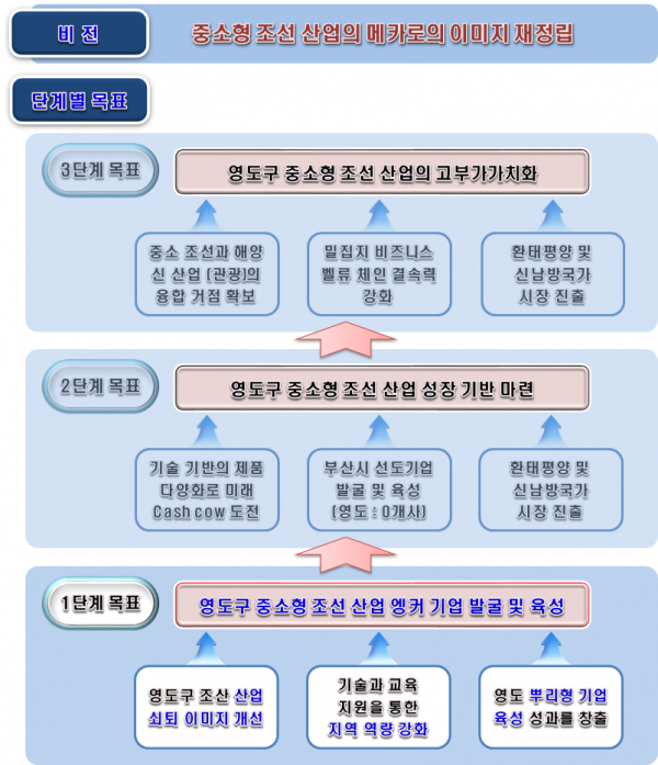 영도구, 참여기관 등과 협력체계를 구축해 중소조선 혁신 협의체 운영 및 컨설팅 지원 등을 통한 혁신화 및 성장 촉진 수리조선 산업 인식개선 제품 고급화 및 시제품 개발, 연계 기술지도 및 공정 개선 등 사업화 지원 전 과정 패키지 지원 등을 추진한다.