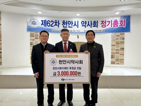 이운형 이사장은 “나눔 문화 확산에 앞장서고 있는 천안시약사회에 감사드린다”며 “후원금은 지역 내 도움이 필요한 이웃들에게 잘 전달되도록 최선을 다하겠다”고 말했다.