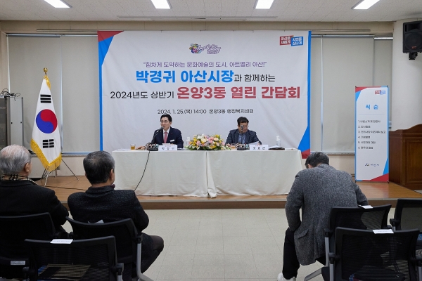 [충청뉴스큐] 박경귀 아산시장과 온양3동 주민들의 2024 상반기 열린간담회가 25일 온양3동 행정복지센터에서 열렸다.