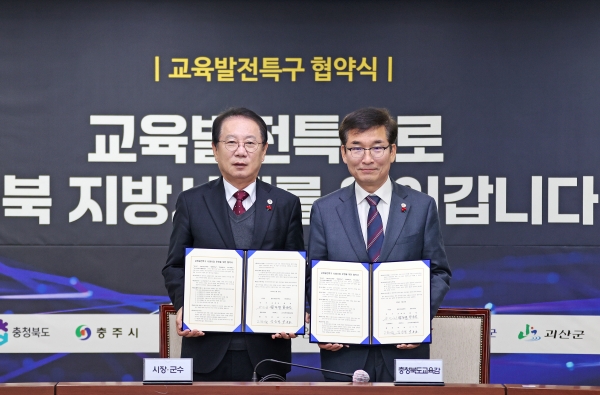 지난 26일에는 충청북도교육청 및 중원대학교, 충북대학교, ㈜네패스, 자연드림 등 5개 기관과 업무협약을 맺으며 교육발전특구 시범사업의 성공적인 추진을 다짐했다.
