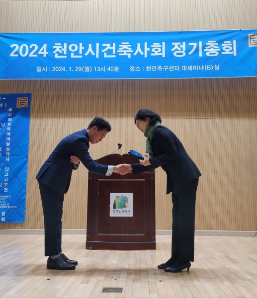 [충청뉴스큐] 천안시의회 김명숙 건설교통위원회 부위원장이 지난 1월29일 천안시건축사회로부터 감사패를 전달받았다.