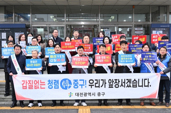 [충청뉴스큐] 대전 중구는 설 명절을 앞둔 31일 오전 구청사 본관 입구에서 음주운전 근절 및 청렴 문화 확산을 위한 청렴캠페인을 실시했다고 밝혔다.