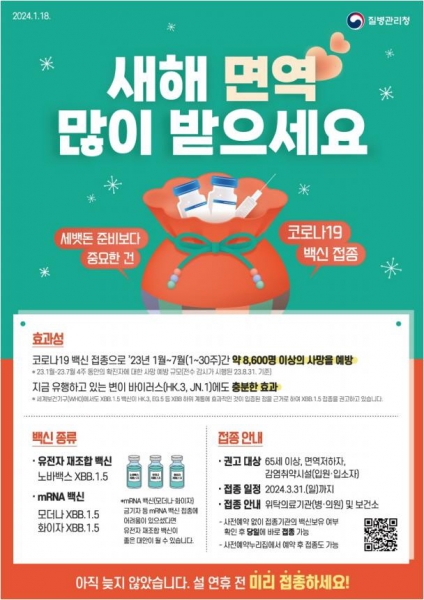 가족 모임, 시설 면회 등 집단활동 증가가 예상되는 다가오는 설 명절을 대비해 본인과 가족이 건강한 명절을 보낼 수 있도록 절기 코로나19 백신 미접종자는 접종이 필요하다.