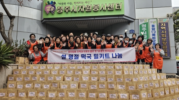 [충청뉴스큐] 청주시자원봉사센터는 1일 오전 10시, 오후 2시 두 차례에 걸쳐 센터 교육장에서 설 명절 떡국 밀키트 나눔 자원봉사 활동, ‘내 곁의 호우’를 추진했다.