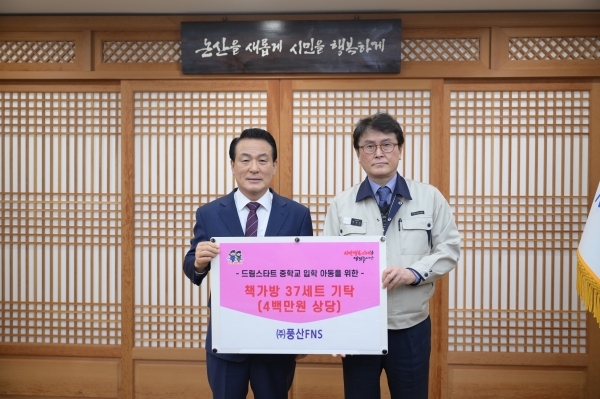 한편 ㈜풍산FNS는 논산시 은진면 소재의 첨단센서류, 정밀기계부품, 가속도계를 생산하는 방위산업 전문기업으로 지난 2015년 연탄후원을 시작으로 매년 저소득층 아동에게 교복, 책가방, 연탄 등 총 5천 9백여 만원 상당을 기부해 온 바 있다.