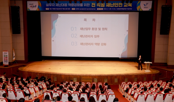 [충청뉴스큐] 보령시는 지난 1일 보령문화예술회관 대공연장에서 보령시청 산하 전 직원을 대상으로 재난대응 역량강화를 위한 재난안전교육을 실시했다.