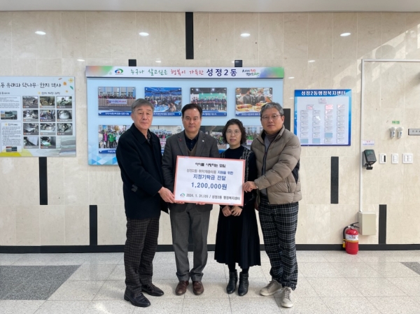 [충청뉴스큐] 천안시 성정2동은 최근 아이를 사랑하는 모임이 지난해에 이어 올해도 조손가정 아동을 위해 성금 120만원을 기탁했다고 밝혔다.