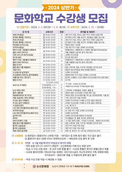 [충청뉴스큐] 논산문화원은 오는 5일 오전 9시부터 상반기 문화학교 수강생을 모집한다.