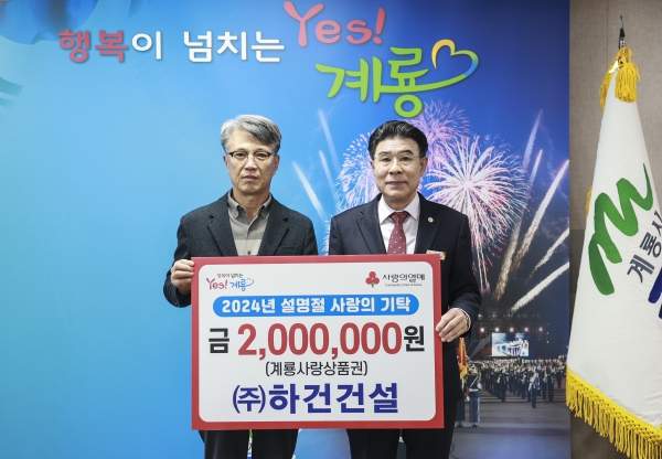 [충청뉴스큐] 계룡시는 지난 4일 ㈜하건건설로부터 설명절 맞이 계룡사랑상품권 200만원을 기탁 받았다고 밝혔다.
