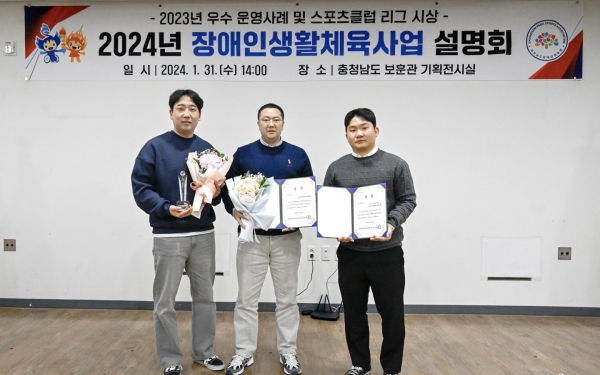 이어 2023년 충남 장애인생활체육 ‘우수 스포츠클럽 종목별 시상’에서는 탁구·볼링·좌식배구가 3관왕을, ‘우수 매니저’ 시상에서는 안형권, 이참솔, 정창식 매니저가 선정되는 영광을 누렸다.