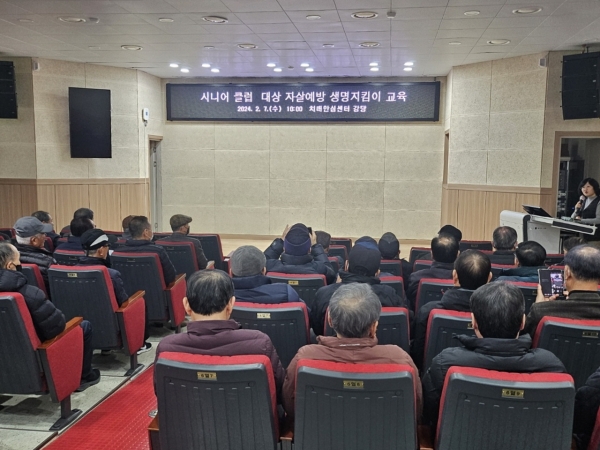 [충청뉴스큐] 서천군보건소가 지난 7일 서천군보건소 치매안심센터 강당에서 서천군 시니어 클럽 회원 60명을 대상으로 생명존중 문화 조성을 위한 자살예방 생명사랑 지킴이 교육을 실시했다.