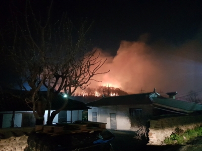 한편, 오후 9시 30분경 만약의 경우를 대비해 산불현장 인근 주민 30여명을 대각1리 마을회관으로 대피 조치했다.