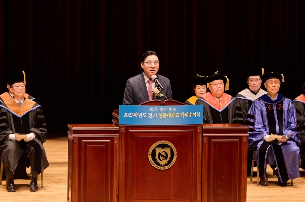 [충청뉴스큐] 박경귀 아산시장이 지난 15일 선문대학교 원화관 아트홀에서 열린 ‘2023학년도 전기 학위수여식’에 참석했다.