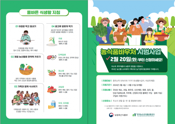 시 관계자는 “고물가 시대에 취약계층의 어려움은 더욱 클 것이다 농식품 바우처 시범사업이 취약계층의 영양개선과 생계 안정에 도움이 되길 바란다”고 말했다.