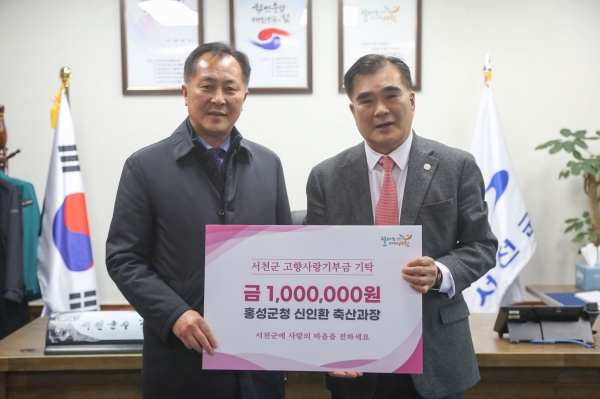 [충청뉴스큐] 신인환 홍성군청 축산과장이 지난 22일 서천군에 고향사랑기부금 100만원을 기탁해 남다른 애향심을 드러냈다.
