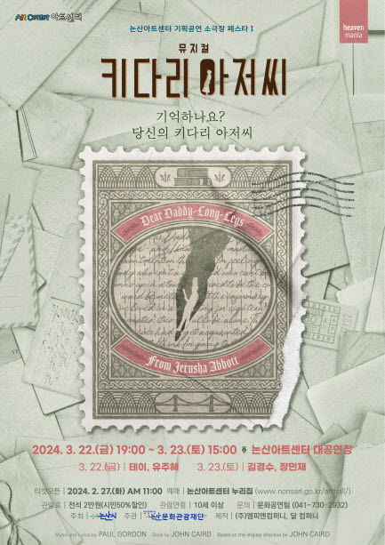 [충청뉴스큐] 논산문화관광재단은 오는 3월 22일 19시와 23일 오후 3시 양일간 논산아트센터 대공연장에서 뮤지컬 ‘키다리 아저씨’ 공연을 진행한다고 밝혔다.