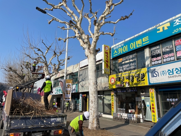 가지치기 사업은 고압전선에 닿은 가지와 간판을 가려 불편함을 초래하는 가지 및 고사된 나뭇가지 등을 제거해 아름다운 가로환경을 유지하기 위한 사업이다.