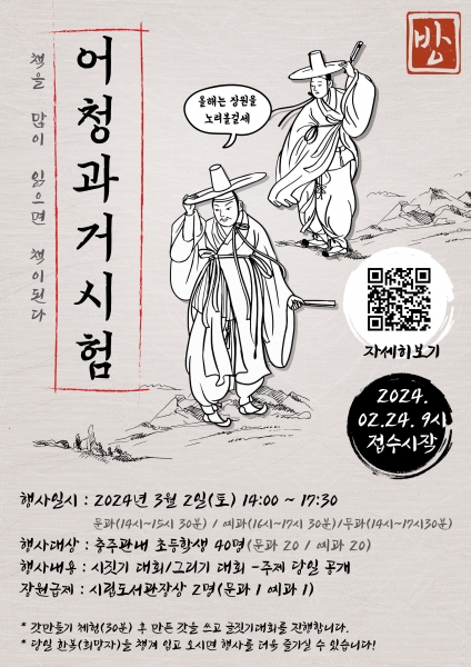 [충청뉴스큐] 충주어린이청소년도서관은 3월 2일 도서관 과거시험 행사 ‘규장각 어린이선비들의 나날’을 운영한다고 밝혔다.