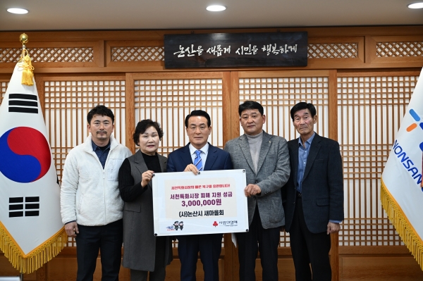 이날 기탁식에서 논산시 주민자치협의회와 논산시 새마을회가 각 300만원을, 전국 이통장연합회 논산시지회가 150만원의 성금을 논산시에 전달했다.