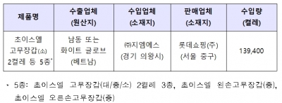 [충청뉴스큐] 식품의약품안전처는 식품수입판매업체인 ‘지엠에스’가 베트남산 고무장갑을 일반용으로 수입해 식품용 기구로 판매한 사실이 확인되어, 해당제품을 판매중단 및 회수조치 한다고 밝혔다.