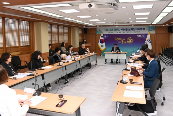 [충청뉴스큐] 부여군은 지난 27일 12명의 보육정책위원이 참석한 가운데 군청 서동브리핑실에서 2024년 제1차 부여군 보육정책위원회를 개최했다.