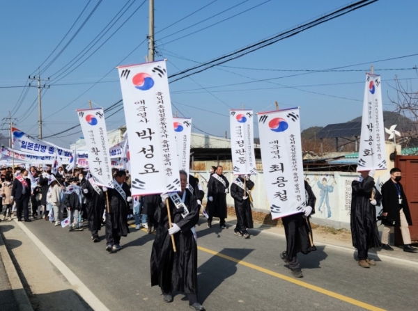 충남최초3.1운동선양회의 주관으로 진행되는 이날 행사는 충화면 행정복지센터에서부터 독립운동 의거 기념비 광장까지 지역민이 자발적으로 참여해 만세운동을 재현하는 행렬을 한다.