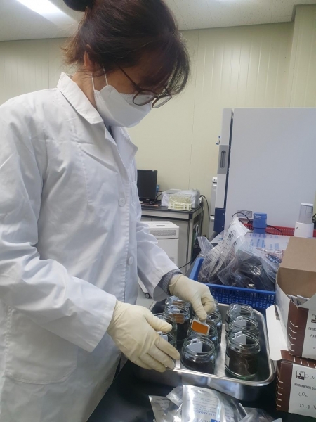 시료채취방법은 잘 부숙된 퇴비더미 5곳에서 퇴비를 채취한 뒤 이물질 제거 후 골고루 섞어 시료봉투에 담아 밀봉해 24시간 이내에 의뢰해야 한다.