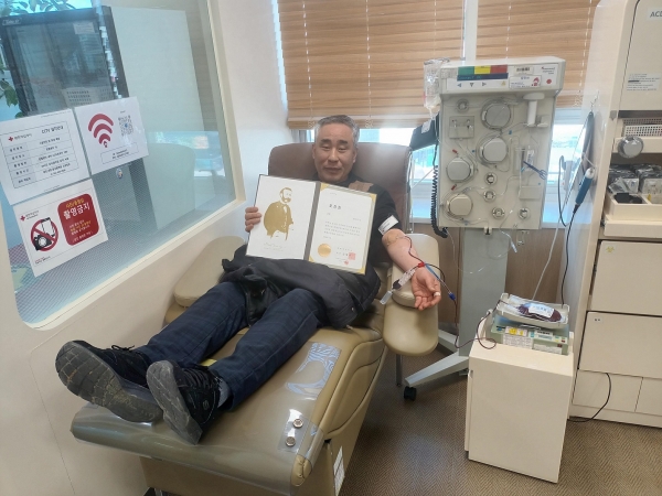 송익수 과장은 “희귀 난치병을 앓던 자녀가 기증받은 헌혈증을 계기로 시작한 헌혈이 어느새 50회가 됐다 나의 작은 실천이 남에겐 큰 도움이 될 수 있다는 사실에 뿌듯하다”며 “앞으로도 꾸준한 헌혈을 통해 많은 이들에게 도움을 줄 수 있도록 노력하겠다”고 밝혔다.