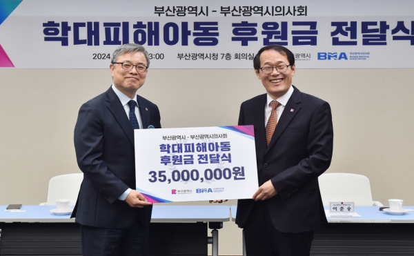 [충청뉴스큐] 부산시와 부산광역시의사회는 어제 오후 1시 시청 7층 회의실에서 ‘학대피해아동 후원금 전달식’을 개최했다고 밝혔다.