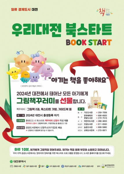 [충청뉴스큐] 대전시는 올해 출생 등록한 모든 아기에게 책꾸러미를 선물하는‘2024 우리대전 북스타트’를 추진한다.