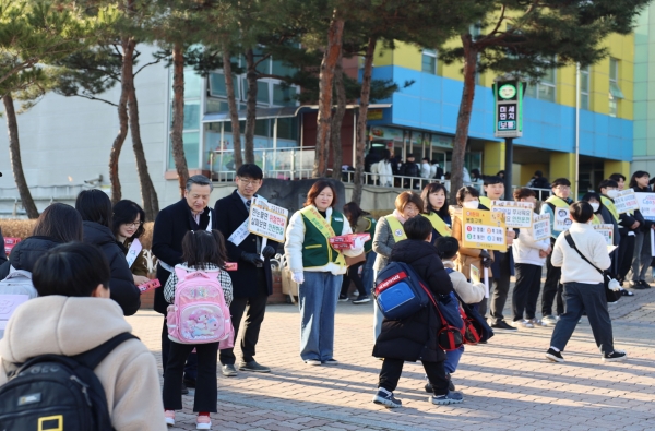 [충청뉴스큐] 아산교육지원청이 3월 13일 오전 8시 아산남성초등학교에서 새 학년을 맞아 어린이 안심동행 등굣길 교통안전 합동 캠페인을 실시했다.