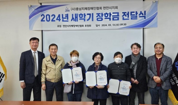 원성호 천안시지체장애인협회 후원회장은 “대한민국의 미래가 될 학생들에게 도움이 되고 싶어 장학금을 전달하게 됐다”며 “앞으로도 지역 장애가정 학생들에게 도움을 줄 수 있도록 노력하겠다”고 전했다.