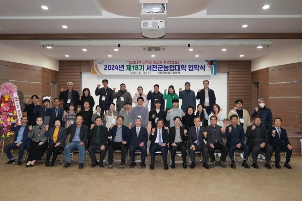[충청뉴스큐] 서천군농업기술센터가 지난 13일 농업기술센터 교육관에서 서천군농업대학장, 농업대학 신입생, 총동문회 임원 등 90여명이 참석한 가운데 제18기 서천군농업대학 입학식을 하고 본격적인 학사일정에 들어간다.