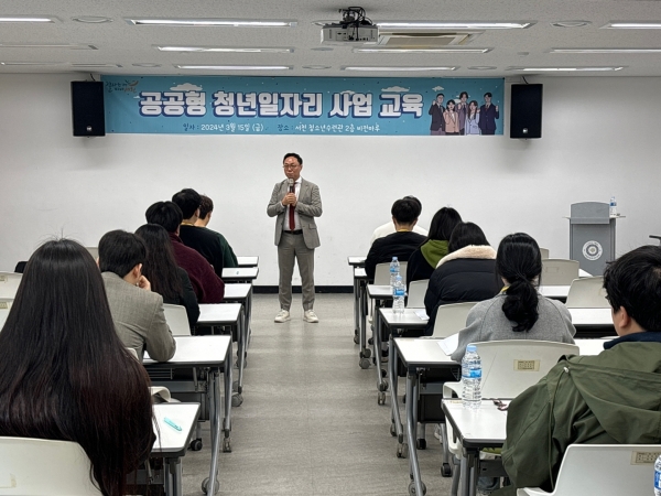 [충청뉴스큐] 서천군이 15일 서천군청소년수련관 비전마루에서 지역주도형 청년일자리사업 및 청년 공공근로사업 참여자 15명을 대상으로 교육을 실시했다.