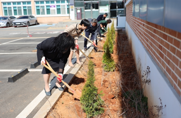 [충청뉴스큐] 아산교육지원청은 3월 20일 오전, 청사 내 정원과 화단에서 전 직원이 참여한 청렴·식목 캠페인을 성공적으로 진행했다.