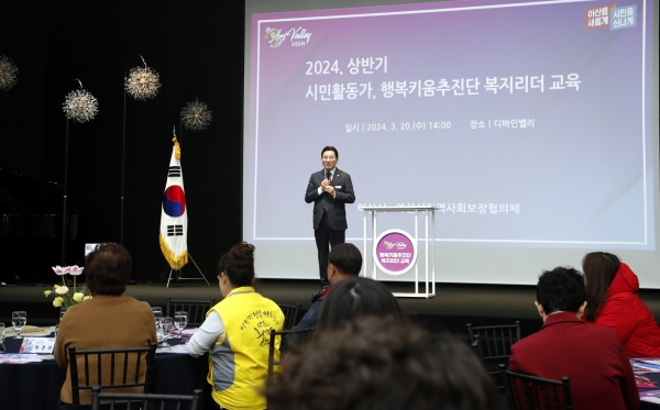 [충청뉴스큐] 박경귀 아산시장이 20일 디바인밸리에서 열린 2024 아산시 행복키움추진단 상반기 복지리더 교육에 참석했다.
