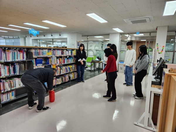 이번 훈련에는 아산도서관 이용객과 도서관 직원, 사회복무요원 등 30여명이 참가해 화재 발생 시 신속하게 대응하기 위한 소화기 사용법과 응급상황 대처요령, 심폐소생술 등이 실시됐다.