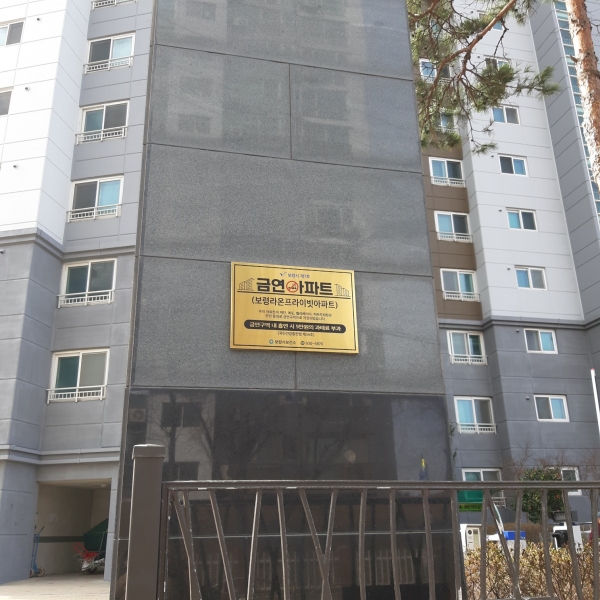 아파트 거주민들이 자발적 참여로 지정된 보령시 제7호 금연 공동주택은 복도·계단·엘리베이터·지하주차장 4곳이 금연구역으로 오는 5월 26일까지 홍보·계도 기간을 거친 뒤 다음 날인 5월 27일부터 금연구역 내 흡연 적발 시 ‘국민건강증진법’에 따라 5만원의 과태료를 부과한다.