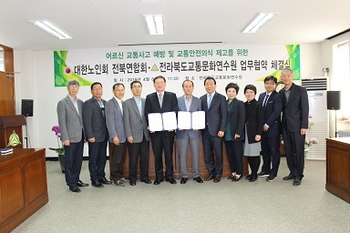 [충청뉴스큐] 전라북도교통문화연수원은 8일 교통문화연수원에서 도내 어르신들의 교통사고 예방 및 교통안전의식 제고를 위해 대한노인회 전북연합회와 업무협약을 체결했다.