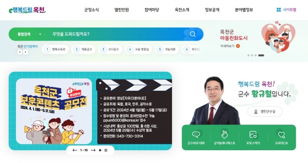 올해 1월 전면 개편해 ‘행복드림 옥천’의 군정 홍보 및 각종 콘텐츠를 서비스하고 있는 군 대표홈페이지에 대한 이용자들의 의견을 수렴해 하반기 홈페이지 서비스 품질 개선을 위한 자료로 활용하기 위함이다.