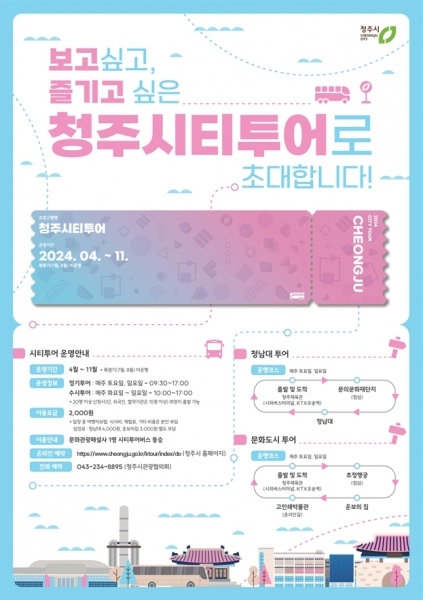 [충청뉴스큐] 청주시는 ‘2024 청주시티투어’를 오는 4월 6일부터 운영한다고 밝혔다.