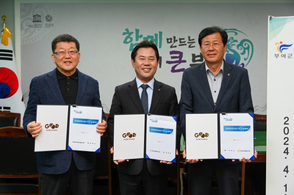 [충청뉴스큐] 부여군은 지난 1일 부여군 공동육아나눔터 운영을 위해 백강문화사회적협동조합, 규암농업협동조합과 위수탁 업무협약을 체결했다.