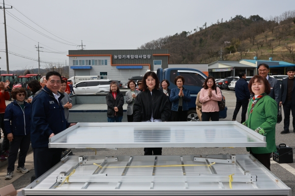 이번에 보급한 농작업대는 여성의 농업 활동을 위한 맞춤형 장비로 여성의 힘으로도 쉽게 이동이나 조작이 편리한 알루미늄 소재를 활용했다.