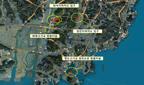 시역내 방음터널 4곳은 ▲영도고가교 ▲화명고가교 ▲장전지하차도 ▲와석지하차도다.