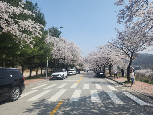 그런데, 1주일이 지난 주말 벚꽃이 만개하면서 축제 기간에 즐기지 못한 벚꽃을 만끽하고자 다시 아산을 찾은 방문객들로 벚꽃길 주변은 주차 공간이 부족할 정도였다.