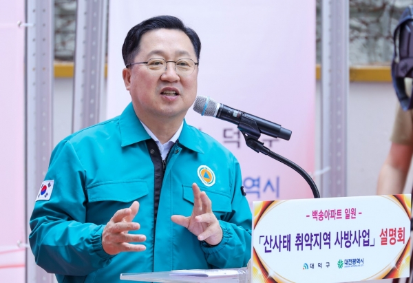 [충청뉴스큐] 대전시와 대덕구는 11일 대덕구 읍내동 백송아파트에서‘산사태 취약지역 사방사업 설명회’를 개최했다.