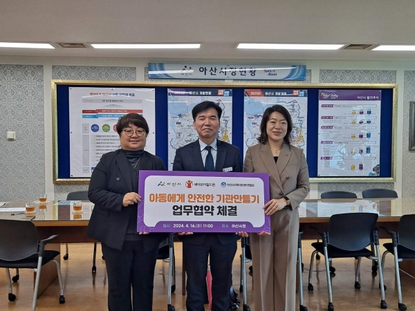 [충청뉴스큐] 아산시는 16일 시청 부시장실에서 세이브더칠드런코리아 중부지역본부, 아산시 지역아동센터 연합회와 ‘아동에게 안전한 기관 만들기’ 사업추진을 위한 업무협약을 체결했다.