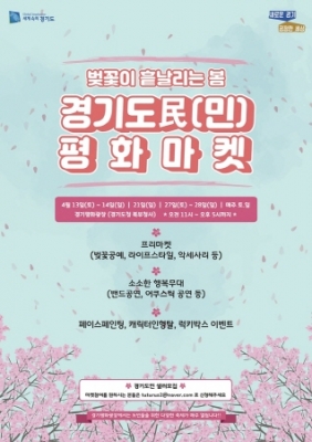 경기도는 오는 13일을 시작으로 4월 한 달 간 경기도청 북부청사 앞 ‘경기평화광장’에서 ‘벚꽃이 흩날리는 봄, 경기도民 평화마켓’을 개최한다고 10일 밝혔다.