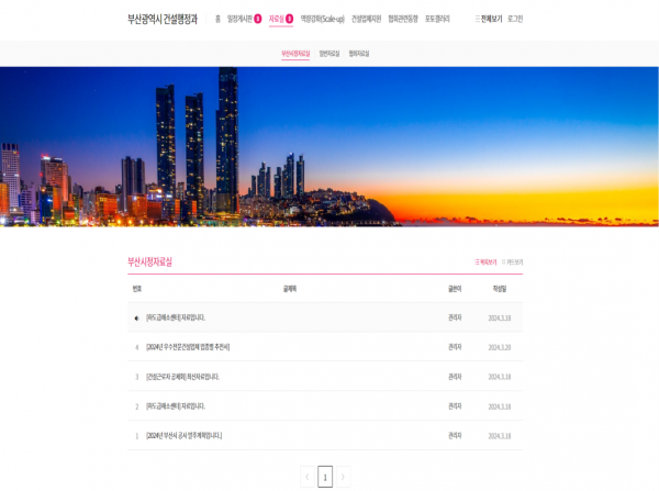 주요한 일들의 공지사항과 부산지역 건설행정의 전체 일정을 한눈에 볼 수 있어, 해당 일정에 참여코자 하는 업체는 일정을 미리 파악할 수 있어 일정 관리가 용이할 것으로 기대된다.